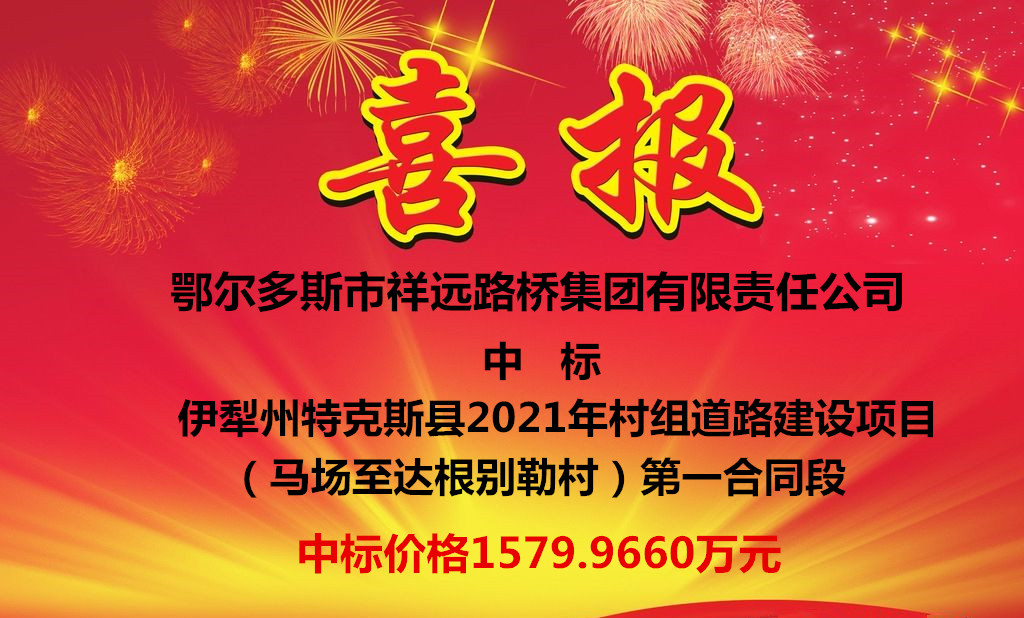 鄂爾多斯市祥遠(yuǎn)路橋集團有限責(zé)任公司中標(biāo)伊犁州特克斯縣2021年村組道路建設(shè)項目(馬場至達(dá)根別勒村)第一合同段,道路總長19.565Km,中標(biāo)價格為1579.9660萬元.